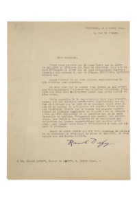 L.S. "Raoul Dufy", Perpignan April 9, 1946, to Claude LAFAYE ; 1 page in-4 typed. — In response to a request for a dedication of a book by SALACROU [Les Fiancés du Havre], he raises the question of reproduction of works of art. "Will the number of authentic works of art in painting increase in relation to the demand? This is an economic side of the question that I feel unable to deal with. Visiting museums, exhibitions, painters' studios and building up a collection of good reproductions of the works one loves, can certainly give satisfaction to those who love painting"...