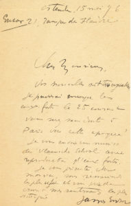 En tête de la lettre, il donne son adresse : «Ensor 21, rampe de Flandre».