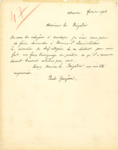 L.A.S. "Paul Gauguin", Atuana February 1903, to Brigadier CLAVERIE : half page in-4. "In the name of the natives of Anaiapa, I have come to ask you to ask the administrator to revoke the dismissal of the native chief of this district for having given false testimony in court, which he acknowledged in front of witnesses heard by you"... — The friendships of the painter Georges-Daniel de Monfreid and his relics of Gauguin (Jean Loize, 1951, n° 334).