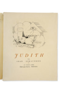 - Judith. Tragédie en trois actes (Paris, Émile-Paul frères, 1931) ; in-8, broché, couverture rempliée. Édition originale, illustrée de 6 gravures en taille-douce de Laboureur. Un des 200 exemplaires sur vélin d'Arches (qqs rousseurs aux premiers et derniers ff.).