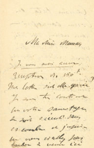 L.A.S. "H", [Paris October 1891], to HER MOTHER, Countess Adèle de TOULOUSE-LAUTREC ; 3 pages in-8. — He is "very glad that your rescue was carried out without a hitch and I hope that you will not delay in coming here leaving Auntie in good company to come and see your son, whom you are letting go quite casually thanks to the many impedimenta which have occurred, it is true ; but it seems to me that the hour of revenge has come and I hope that you will not wait until New Year's Day to bring yourself here, arms and baggage. Nothing new but that. The weather is dark and everything is going on. Daddy talks of going away without conviction. The exhibitions are starting... — Correspondence (ed. Herbert Schimmel, 1992), n° 206, p. 181.