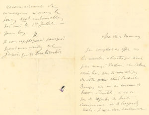 2 L.A.S. "your boy Harry" and "Henri", [Paris June-July 1892], to HER MOTHER, Countess Adèle de TOULOUSE-LAUTREC ; 3 1/2 pages in-8 each. — On the financial troubles of her maternal aunt Cecile Pascal, who had to sell the family estate of Respide. [June]. "My dear Mama, I was indeed counting on indirect news which has not been lacking, and the expectation was much more on my side than on yours where the interest was. Bourges informed me of everything. It is useless, is it not, to speak again of the sad event, and to brood over it. I will only tell you that I have been completely bewildered all week, having lost my sense of time and place. What state must Joseph be in? - Dad continues to talk about his imaginary departure. [...] repeat to everyone what you must have already said and what I hope did not need to be said, the great part I took in everything that happened, and... will happen"... Finally, he asks for an advance of 500 F, repayable on July 1 : "I will explain why when you come and I hope it will be soon." [June-July]. "My dear Mother, I am the last of the pignoufs for not having answered your letter." Paul and Joseph Pascal are in Paris, "and in the throes of all the hassles of the lawmen. Papa gave us lunch on Sunday and dinner on Monday, he was very kind. I saw Uncle Odon, who told me nothing significant. As for the way Papa spoke to me about Le Bosc it was rather in a smoky tone. I know that Aunt Armandine is at Malromé. - Do you know that Papa announced to me that Uncle Charles was decorated with the Order of Gregory the Great. And Albi is jubilant. Mgr Fonteneau [Bishop of Albi] is a very clever man. Aunt Alix also wrote to Papa, probably to soften the bitterness of the pill. - What diplomacy? - I'm looking forward to good weather. It's hot but stormy. Try to bring us the sun as soon as possible, and ask Tata to intercede with St. Michael, who I believe is very well with her. .... — Correspondence (ed. Herbert Schimmel, 1992), nos. 232-233, p. 195-196.