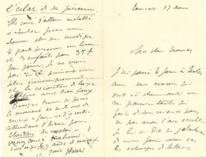 L.A.S. "yours Henri", Taussat (Gironde) 17 August [1892], to HER MOTHER, Countess Adèle de TOULOUSE-LAUTREC ; 4 pages in-8. — About her holiday, and her aunt and cousins Pascal. "My dear Mother, I spent four days at Soulac with my cousins, who were charming, and my poor aunt, who is doing her best not to look overwhelmed. I told her I would try to get you to come, as the exchange of stern but fair letters has made her very sad. In case it does not suit you to see Juliet, I think my aunt would come to see you either at Malromé or elsewhere, where you could (I think) make her swallow the pill of separation which has not yet entered her head. As for a pension, your categorical answer does not allow me to insist. But see what can be done. They could talk to Malromé about it : "I am here to support you and I have done you justice. We recognize that you are the only one who has shown a heart. As for the rest of the family, - they are not white. - I left them in the presence of Suzanne Gonthier who enhances the beach with the brilliance of her presence. They are moreover installed in Soulac for a more than modest sum : 4 large people, a maid and 3 children for 35 F per day, I do not believe that they can live more economically, - and the stories of exaggerated luxury are quite false. Bourges finds that for the moment the best thing they can do is to stay there, waiting for the winter to find jobs"... — Correspondence (ed. Herbert Schimmel, 1992), no 240, p. 201.