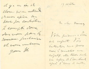 2 L.A.S. "yours H.", [Paris October 1892], to HER MOTHER, Countess Adèle de TOULOUSE-LAUTREC ; 4 pages in-8 each, the 2nd in blue pencil. — On his aunt Cécile Pascal. [Toulouse-Lautrec has installed his ruined aunt in the Convent of the Blessed Sacrament, 22 rue de Naples]. October 19. "My dear Mother, Your presence in Paris is urgent. Your intentions are pure but the result is negative. My aunt has been refused hot water after six o'clock in the morning, and wood for heating, as the wood is not included in the board and must be paid for separately. Also the food is unclean and the place is like a barracks. Either you have not explained yourself well with the administration, or there is something better to do, and, in spite of all my aunt's good will, it is impossible to leave her in this asylum which, in spite of its appearances, does not offer even the most elementary comfort. You must come and arrange it yourself, and I cannot do that. There are a lot of things which a person of my kind cannot control. I am counting on you for next week, and I send you my love"... [October]. "My dear Mother, I understand your panic, and unfortunately there is little hope. If poor Auntie [Armandine d'Alichoux de Sénégra, †1893] gets through this adventure overworked as she is she will be able to thank St. Michael. I suppose that you have not yet received my letter in which I drew up a balance sheet of the expenses to be made for my aunt Cécile, whose situation takes a back seat given the regrettable by-product of Tata's illness." He paid 70 F, "plus 100 F that I need to clear away the wreckage of Respide, linen and winter effects of my aunt - which are on hold at the station. I'm sorry to insist, but it's urgent, and unless we can get her all dressed up again, we'll have to go through this. I am sorry that your arrival in Paris is postponed until the Greek calendar and I beg you to take care of yourself so that you do not fall ill in your turn... — Correspondence (ed. Herbert Schimmel, 1992), nos. 251 and 253, pp. 206-208.
