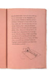 Feuillets cousus. Papier pelure rose. Douze corrections manuscrites à l'encre noire.