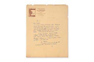 CAMUS Albert (1913-1960) — Lettre autographe monogrammée (minute), [vers 1948] ; 1 page in-4, vignette et en-tête de Graindarome Cafés & Poivres Jean Moustrou L'Isle-sur-Sorgue (bords très légèrement eff rangés).