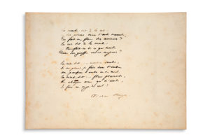 HUGO Victor (1802-1885) — Poème autographe signé à l'encre, s.d ; 1 page in-4 oblong.