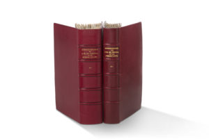 Enveloppes conservées sous deux volumes, tiré in-8 de maroquin bordeaux, dos à cinq nerfs tirés or têtes dorées, non rognés étuis.