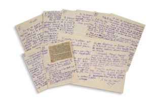 les 8 lettres à l'encre violette sur papier vélin filigrané Ducal Crown dont une lettre ne semble pas complète (découpé par le milieu) ; lettres numérotées «4» à «7», puis «10», «11» et «14», 4 coupures de presse sont jointes dont 2 collées sur la lettre n°10 soulignées au crayon rouge ; une enveloppe à l'adresse de Georges Louis comme ambassadeur de France à Saint-Pétersbourg (timbres, marques postales, cachets postaux russes) sur la situation internationale extrêmement tendue, ce qui ne semble pas déplaire à Pierre Louÿs.