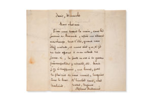 Lettre autographe signée de Stéphane Mallarmé à Paul Verlaine de l'Hôpital Broussais, salle Didot où il était hospitalisé.