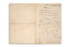 VERLAINE PAUL (1844-1896) — Autoportrait, dessin original à l'encre sur un feuillet d'une lettre autographe signée à «CHER AMI» Paris, le 4 octobre 1895. — 3 pages in-8 à l'encre.