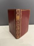 - [Almanach]. DÉLICES (Les) de Cérès, de Pomone et de Flore ; ou La campagne utile et agréable avec un précis des travaux de l'agriculteur, du jardinier & du fleuriste ; contenant le temps des semailles, de la floraison de chaque plante, & celui des récoltes. A Paris, chez Desnos, pour la présente année [vers 1770]. In-12, maroquin rouge époque, dos lisse orné, pièce de titre fauve, triple filet d'encadrement aux plats, roulette dorée aux coupes, tranches dorées, onglet de logement du stylet en maroquin (un coin émoussé, coiffes restaurées, sans le stylet ; mouillure claire sporadique).