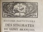 La fin du volume renferme : « Histoire particulière des stigmates de saint François », suivie de : « Eclaircissemens sur l'indulgence de la portiuncule ». Portrait du saint en prière gravé sur cuivre en frontispice.