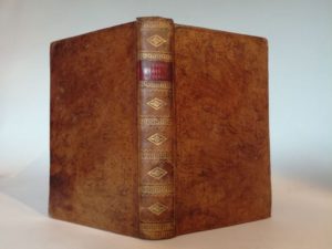 [COPINEAU (abbé)]. Essai synthétique sur l'origine et la formation des langues. A Paris, chez Ruault, 1774. In-8, XV-464 p., [2] f., basane fauve racinée fin XVIIIe s., dos lisse, pièce de titre basane rouge, roulettes et fleurons dorés, roulette dorée aux coupes, tranches jaunes (accrocs à la coiffe de tête, 3 coins émoussés, rousseurs).