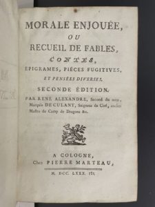 CULANT (René Alexandre de). Morale enjouée, ou Recueil de fables, contes, épigrammes, pièces …