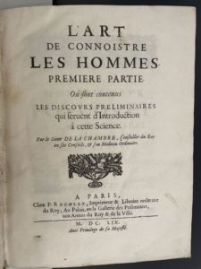 CUREAU DE LA CHAMBRE (Marin). L'art de connoistre les hommes. Première [-seconde] partie A Paris, …