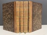 DESTUTT DE TRACY (Antoine Louis Claude). Elémens d'idéologie. I : Idéologie proprement dite. II : Grammaire. III : Logique. Paris, Vve Courcier, 1817-1818. 3 vol. in-8, XXXII-424 p. + XIV-426 p., 2 tabl. dépl. + VIII-585 p. [Avec, du même :] Principes logiques, ou recueil de faits relatifs à l'intelligence humaine. P., Vve Courcier, 1817. In-8, VII-101 p.. Soit 4 vol. en rel. identique, demi-veau fauve de l'époque, dos lisse, auteur, titre et tomaison dorés, filet et fleurons dorés et à froid, non rognés (fente en tête d'un mors au t.1, qqs rouss. éparses).