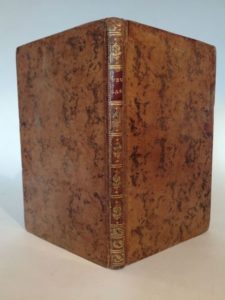 [DUBOIS-FONTANELLE (Joseph-Gaspard)]. Essai sur le feu sacré et sur les Vestales. A Amsterdam, et se trouve à Paris, chez Le Jay, 1768. In-8, [2] f., 109 p., veau havane marbré époque, dos lisse et orné, pièce de titre basane grenat, tranches marbrées (coins et coiffe de tête frottés, petite fente en tête d'un mors, une garde découpée).
