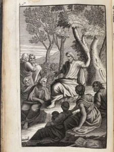 Illustrée de 5 planches gravées sur cuivre : un frontispice par Noblin et les 4 autres non signées représentant Jésus enseignant à la foule, l'Annonciation, la Vocation des Apôtres et la Cène.