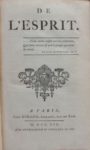 [HELVETIUS (Claude Adrien)]. De l'esprit. À Paris, chez Durand, 1759. In-8, XX-481 p., [1] f. …