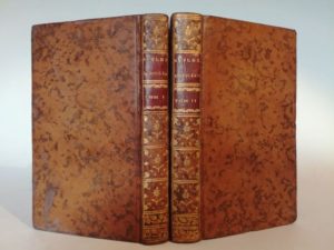 HOLLAND (Georg Jonathan von). Réflexions philosophiques sur le système de la nature. Londres, s.n., 1773. 2 vol. in-12, 288 + 309 p., basane fauve marbrée époque, dos lisse orné, pièces de titre et de tomaison maroquin havane, tranches rouges (coins frottés, épid. au coin de 2 plats, brunissures).