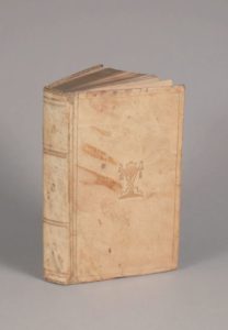 MARCEL (Jacques). La vie du Père César de Bus fondateur de la Congrégation de la Doctrine Chrétienne, érigée en Avignon, nouvellement unie à celle des Clercs Réguliers de Somaque. A Lyon, par C. Morillon, 1619. In-8, [8] f., 433 p., [8] f., pl., vélin souple de l'époque, dos lisse et muet, ornés de filets et 3 fleurons dorés, fers dorés au centre des plats avec les symboles de la Passion, tranches dorées (qq. taches sur la rel., mouillure claire étendue en début et fin de vol., sinon marginale).