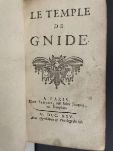 [MONTESQUIEU]. Le Temple de Gnide. A Paris, chez Simart, 1725. In-12, [6] f., 82 p., [1] f. …