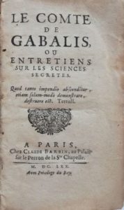 NON VENU /// [Occultisme]. MONTFAUCON (Henri de, dit de Villars)]. Le comte de Gabalis, ou Entretiens sur les sciences secrètes. À Paris, chez C. Barbin, 1670. In-12, [2] f., 327 p., veau havane époque, dos à 4 nerfs, titre doré, fleur de lys en fleuron (reliure usée, coiffes arrachées, lacunes aux coins ; mouillure claire sporadique en marge, trav. de vers dans les marges intérieures, et sur le texte sans gravité p. 153-168, déch. sans perte et tache brune sur le texte ne contrariant pas la lecture p. 125-132).
