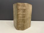OVIDE. Publii Ovidii Nasonis Opera, ex recensione Dan. Heinsii. Amsterdami, Apud G. Blaeuw, 1638. Trois tomes en 1 vol. in-24 (h = 120 mm.), 236 p. (dont un titre gravé), [2] f. blancs ; [1] f., 246 p., 280 p. (mal chiffré 180), parchemin ancien, dos à 4 nerfs, auteur, titre et date manuscrits quasi-effacés (gardes manquantes, petit manque au frontispice dont les bordures sont abîmées, ex-libris gratté en marge, déchirure à la page de titre du t.1 avec manque, mouill. claires sporadiques).