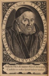 Première édition posthume, enrichie de trois livres et plusieurs chapitres retrouvés dans les manuscrits de l'auteur. Pourvue d'un important index, elle est illustrée d'un portrait de Pasquier, à pleine page, gravé par Léonard Gaultier, d'une grande vignette aux armes royales gravées par Lasné au titre, et d'initiales gravées sur bois.