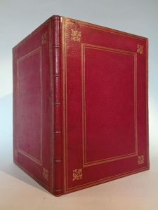 [Tours]. Tiltres de l'establissement du corps de ville de Tours. Privilège de Messieurs les maires, eschevins et habitans d'icelle ville. A Tours, chez Étienne La Tour, 1661. In-4, 94 p., [2] f. (table), plein chagrin rouge du XIXe siècle, dos à 5 nerfs rehaussés d'un filet doré et muet, décor des plats à la Duseuil, filet doré aux coupes, dentelle intérieure, tranches dorées (petit accroc au plat sup., rouss. et bruniss. modérées).