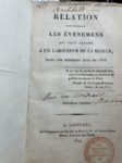 - MARTIN (Thomas). Relation concernant les évènemens qui sont arrivés à un laboureur de la Beauce, dans les premiers mois de 1816. A Londres, De l'imp. de Cox fils et Baylis, 1819. In-8, IV-103 p., broché, cartonnage d'attente.