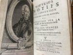 - MOUHY (Charles de Fieux de). Nouveaux motifs de conversion à l'usage des gens du monde ; ou Entretiens sur la nécessité, & sur les moyens de se convertir. Avec des stances pour le Vendredy Saint dédiés à S.A. Madame la princesse de Lambesk. A Paris, chez Gabriel Valleyre, Charles de Poilly, 1738. In-12, 79 p., basane havane marbré, dos à 5 nerfs, pièce de titre rouge, caissons ornés, coupes décorées (coiffes découvertes, coins frottés).