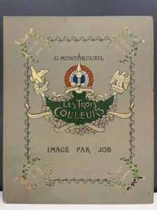 [Album historique illustré]. JOB. MONTORGUEIL (Georges). Les trois couleurs. Paris, Charavay, Martin, s.d. In-folio, percaline éditeur, plat sup. décoré or et polychrome d'une cocarde, d'un coq et d'un aigle d'après une plaque de Paul Souze, plat inf. à décor central d'une rosace à froid [Jacques Drogue] (petites taches et lég. griff. au plat sup., rousseurs).