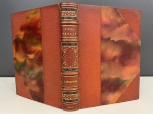 ROUSSEAU. BENOÎT (Pierre). L'Atlantide. Paris, Cyral, (Collection française, 27), 1930. In-8, demi-maroquin orange à coins, dos à 4 nerfs, auteur, titre et date dorés, caissons mosaïqués et filets dorés, tête dorée, couv. ill. et dos conservés [Ch. Septier] (petites fentes aux mors, couvrure brunie aux bords, rouss. aux ff. liminaires).