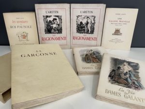- BÉCAT. ARETIN (L'). Les Ragionamenti. Paris, la Nef d'Argent, 1944. 2 vol. in-8, brochés, couvertures illustrées rempliées (taches sur les couv., deuxième vol. non coupé).