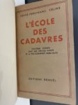 - L'école des cadavres. Paris, Les éditions Denoël, (1938) [1942]. In-8, 223p., [2]f., couv. conservées (pliure sur couv. sup. cons., p.17-18 montée sur onglet sans atteinte au texte, qqs ptes déchirures en marge sans atteinte).