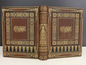DORÉ. DAVILLIER (Charles). L'Espagne. Paris, Hachette, 1874. In-folio, reliure éditeur demi-chagrin havane, dos à nerfs et plats richement ornés de décors dorés, noirs et à froid avec titre doré aux centres des plats, tranches dorées (lég. frott. dont 2 coins).