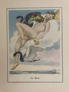 Édition illustrée de 60 compositions originales en couleurs de Brunelleschi. Un des exemplaires de tête sur vélin de luxe (n° 18), sans les deux suites annoncées. Charmant ex-dono autographe, sur un morceau de parchemin, signé de Jane d'Arboy, voyageuse et romancière des années trente : « A Denise ce livre audacieux mais qui par son art sait tout faire pardonner ».