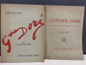 DORÉ. - VALMY-BAYSSE (J.), DÉZÉ (Louis). Gustave Doré. Bibliographie et catalogue complet de l'oeuvre. Paris, Seheur, (coll. L'Art et la vie), 1930. 2 volumes in-4, 354 + 166 p., ill. en noir, brochés, couv. rempliée (dos d'un volume insolé et lég. décollé).