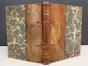 OBERLÉ. DUNAN (Renée). Le prix Lacombyne. Paris, Mornay, (La collection originale, 8), 1924. In-8, demi-veau fauve marbré et glacé, 4 nerfs larges et plats à motif prolongé sur les plats, auteur et titre dorés, tête dorée, couv. et dos conservés (taches).
