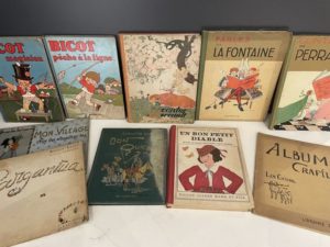 - Bicot à la pêche n°7 ; Bicot magicien n°8. Hachette. ; - Contes de Perrault. Illustrations de Félix Lorioux. 2 vol. Hachette, 1926 et 1927. ; - Gargantua. Illustrations de Adrien Leroy. J. Leroy et Cie. ; - Fables de La Fontaine. Illustrations de Félix Lorioux. Hachette. ; - SEGUR (Comtesse de). Un bon petit diable. Mame et Fils, 1931. ; - CERVANTES SAAVEDRA (Michel). Don Quichotte de la Manche. Illustrations de Henry Morin. Laurens. ; - Album Crafty. Les chiens. Plon. ; - HANSI. Mon village. Ceux qui n'oublient pas. Floury. ; - Fables de la Fontaine. Illustrations de Benjamin Rabier. ; - DESBEAUX (Emile). Les pourquoi et les parceque de Medemoiselle Suzanne. Ducrocq. ; - RABIER (Benjamin). Gédéon sportsman. Garnier Frères. ; - ROBERT-DUMAS (Charles). Contes d'or de ma grand-mère. Illustrations de Felix Lorioux et M. Berty [Et] Contes d'argent de ma grand-mère. Illustrations de Félix Lorioux. 2 vol. Boivin. ; - MONTORGUEIL. Au payx des chansons. Illustrations de Job. Boivin. ; - TROGAN. Les mots historiques. Pays de France. Illustrations de Job. Mame et Fils. ; - SAINT-EXUPERY (Antoine de). Le Petit Prince. Gallimard, 1946. ; - HESSELBERG (Erik). Les compagnons du Kon-Tiki ou Comment j'ai traversé le pacifique à bord d'un radeau préhistorique. Julliard.