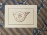 Ex-libris moderne au monogramme GMF dans un cor de chasse et à la devise « Crois, aime, espère ».