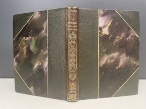 JOU. FRANCE (Anatole). La rôtisserie de la reine Pédauque. Paris, Mornay (Les beaux livres, 5), 1920. In-8, maroquin vert bronze, dos lisse richement orné, avec 2 fleurons mosaïqués, auteur, titre et date dorés, filets dorés aux plats, tête dorée, couv. et dos conservés [H. Capelle] (dos passé).