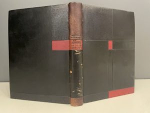 SIMEON. FRANCE (Anatole). Les désirs de Jean Servien. Paris., "Le Livre", 1924. In-8, reliure mosaïquée en maroquin box et chagrin de jeux de rectangles noirs et rouges, dos lisse, auteur et titre à froid, encadrement des contreplats de box noir et papier à bandes dorés et rouges, tête dorée, couv. et dos conservés [H.R. Labussière] (dos frotté).
