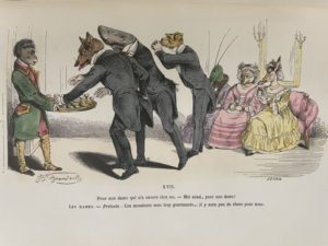 51 planches gravées sur bois et coloriées, dont le frontispice, et nombreux en-têtes, culs de lampes et vignettes, le tout d'après les compositions de Grandville.