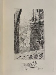 Première édition illustrée, ornée de 21 eaux-fortes originales de Charles Jouas. Le texte est imprimé dans un encadrement architectural imprimé en vert.