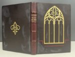 JOUAS. HUYSMANS (Joris-Karl). Trois Églises. Paris, Kieffer, 1920. In-4, chagrin noir, dos à 4 nerfs saillants, auteur et titre doré, plat sup. orné d'une fenêtre gothique dorée, et de filets rouges mosaïqués, grand fleuron doré au plat inf., dentelle intérieure, couv. conservées, [Vautier] (dos uniformément passé havane, traces blanches aux plats).