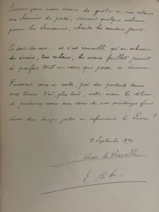 Écrit avec soin, à l'encre, sur papier vergé écru anglais, le volume se compose d'un feuillet de titre, de 71 feuillets chiffrés écrits au r° seul, et de 3 feuillets non chiffrés. Le dernier feuillet renferme une table des poèmes, dont les auteurs sont J. de Baralle, ou E. Hibou [ou Hibon ?]. Un feuillet in-4° est joint, manuscrit, contenant une « Chanson des Mousquetaires » en 5 couplets.