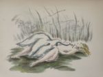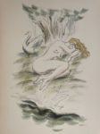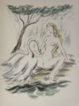 [Curiosa]. MANSET (Régis). La Femme et le cygne. S.l., Aux Dépens de quelques bibliophiles, 1947. In-4, en feuilles, couv. rempliée (couv. fortement brunie, rouss. aux gardes et faux-titre).